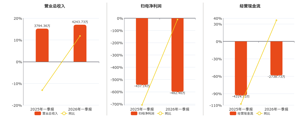 公司生意总收入为4243.73万元。归母净利润为-482.40万元,较旧年同论说期归母净利润减少45.26万元。计较举止现款净流入为-2738.73万元。