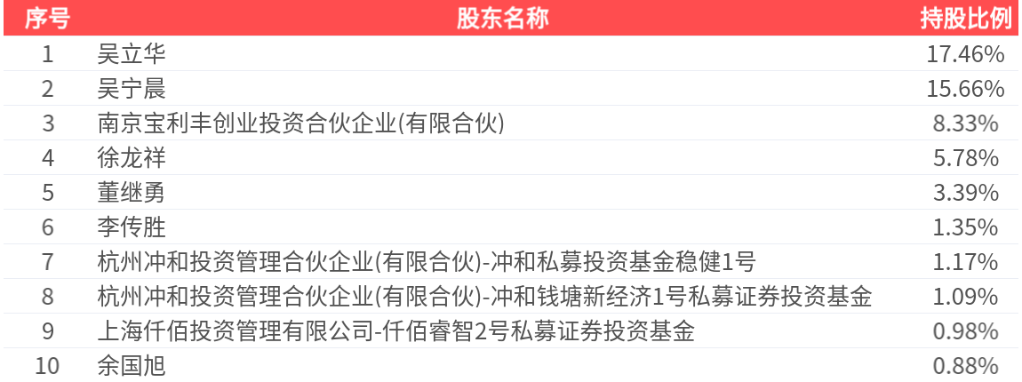 公司鼓励户数为4357户开云体育,前十大鼓励捏股数目为4018.45万股,占总股本比例为56.08%,前十大鼓励捏股情况如下:
