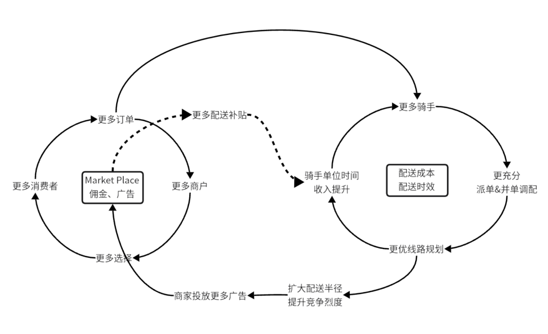 外卖要玩得转,需要用户、商家、骑手,三个依次畅通。逻辑很好交融,用户为什么要用你这个平台?无非商品多、送得快。骑手为啥选择你这里办事,无非单量多。商家为什么入驻这个平台,无非能赚到钱。