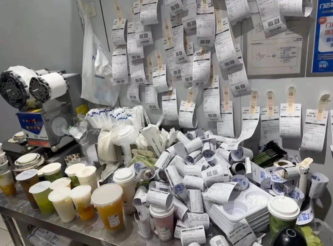 蜜雪冰城、茶百说念、益禾堂等茶饮店铺的后台齐快忙得摩擦发火了,一个20平米的店铺里安排了10个职工齐无法餍足主顾的条目。