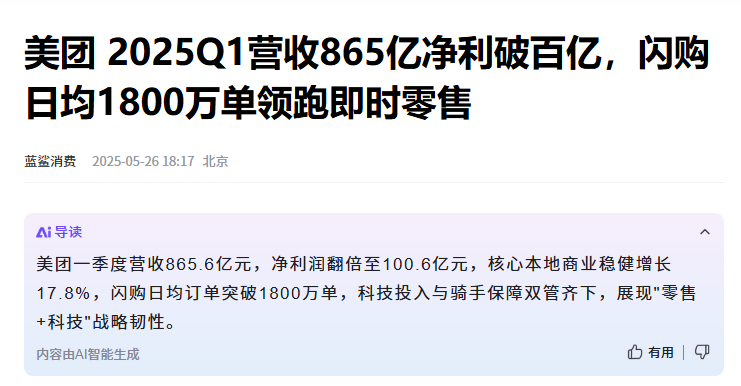 2025年Q1财报浮现,其即时零卖GMV增速达40%,远超餐饮外卖!