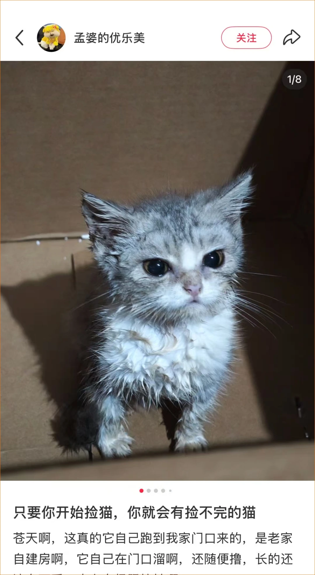 等带着小猫回到家,给它上了药、喂了水和食品,小家伙终于舒畅了之后,你初始翻看养宠一又友们的各式旧事。
